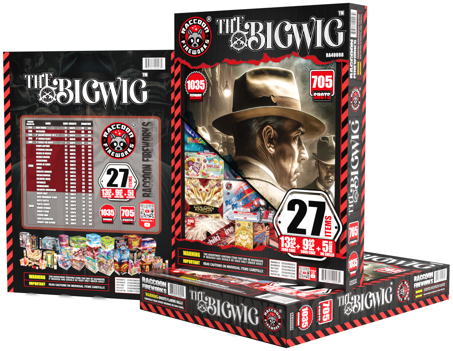 Are you ready to set the night on fire? Join us with BIG WIG! An ultimate assortment that you'll have 27 items to light up, boasting a whopping 705 shots that'll have you feeling like the king of fireworks, and over 1035 seconds of jaw-dropping spectacle.