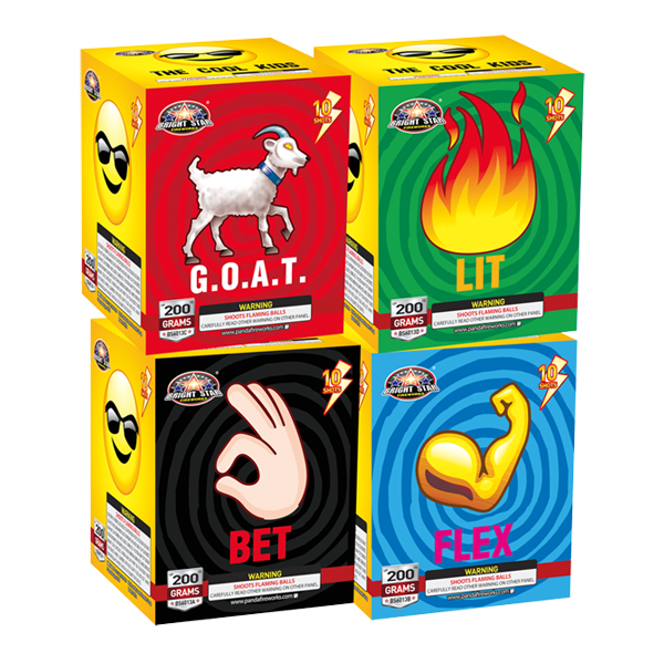 four cool 200g cakes with V angle finale: